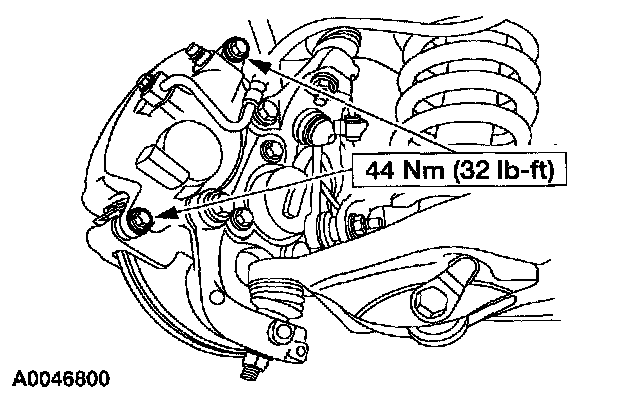 2. NOTE: Tighten the lower brake caliper bolt first.