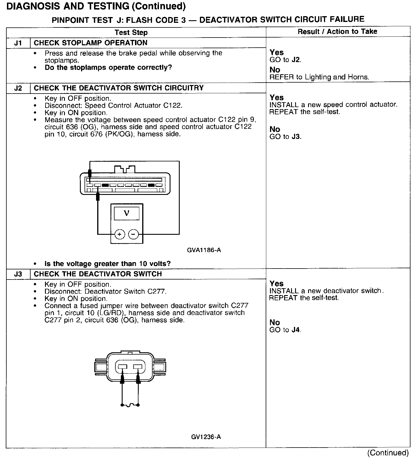 PINPOINT TEST J: FLASH CODE 3 - DEACTIVATOR SWITCH CIRCUIT FAILURE