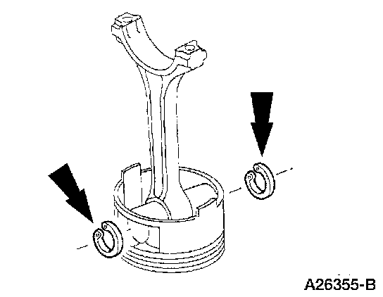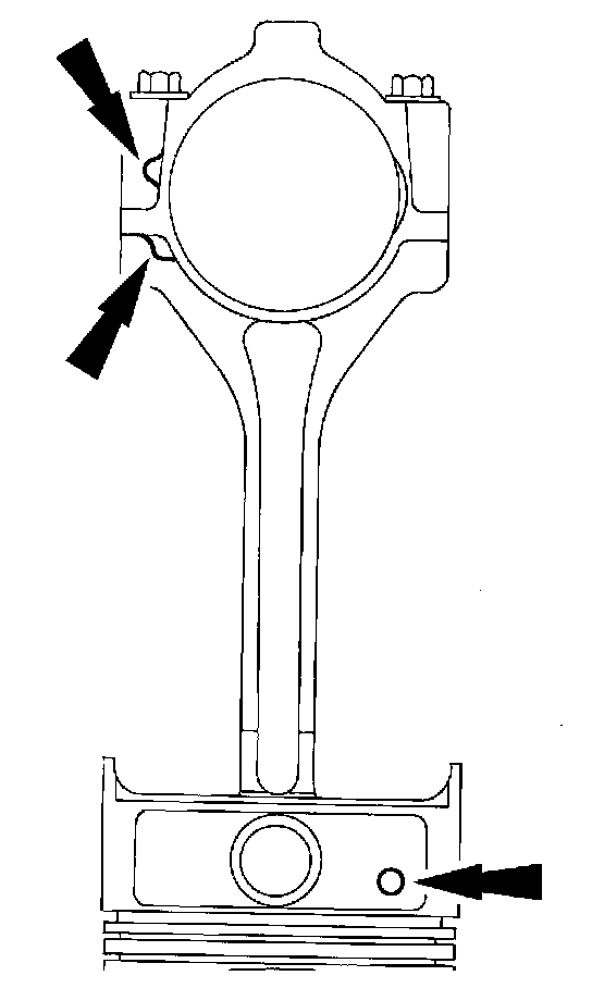 1. NOTE: Connecting rod must be installed into the piston with identification markings toward the front.