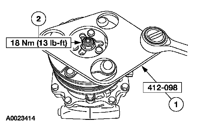 6. CAUTION: Do not use air tools. Damage to the A/C clutch pulley may result.
