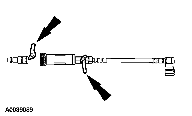 Disconnect the high-pressure and low-pressure service valves and remove the deluxe injector loop kit from the vehicle.