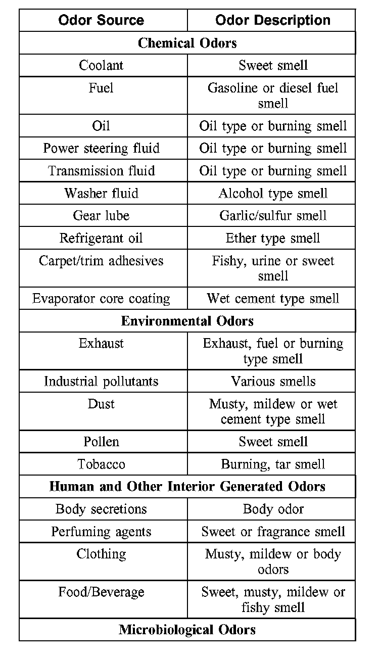 NOTE: There are typically four types of objectionable odors found in a vehicle: