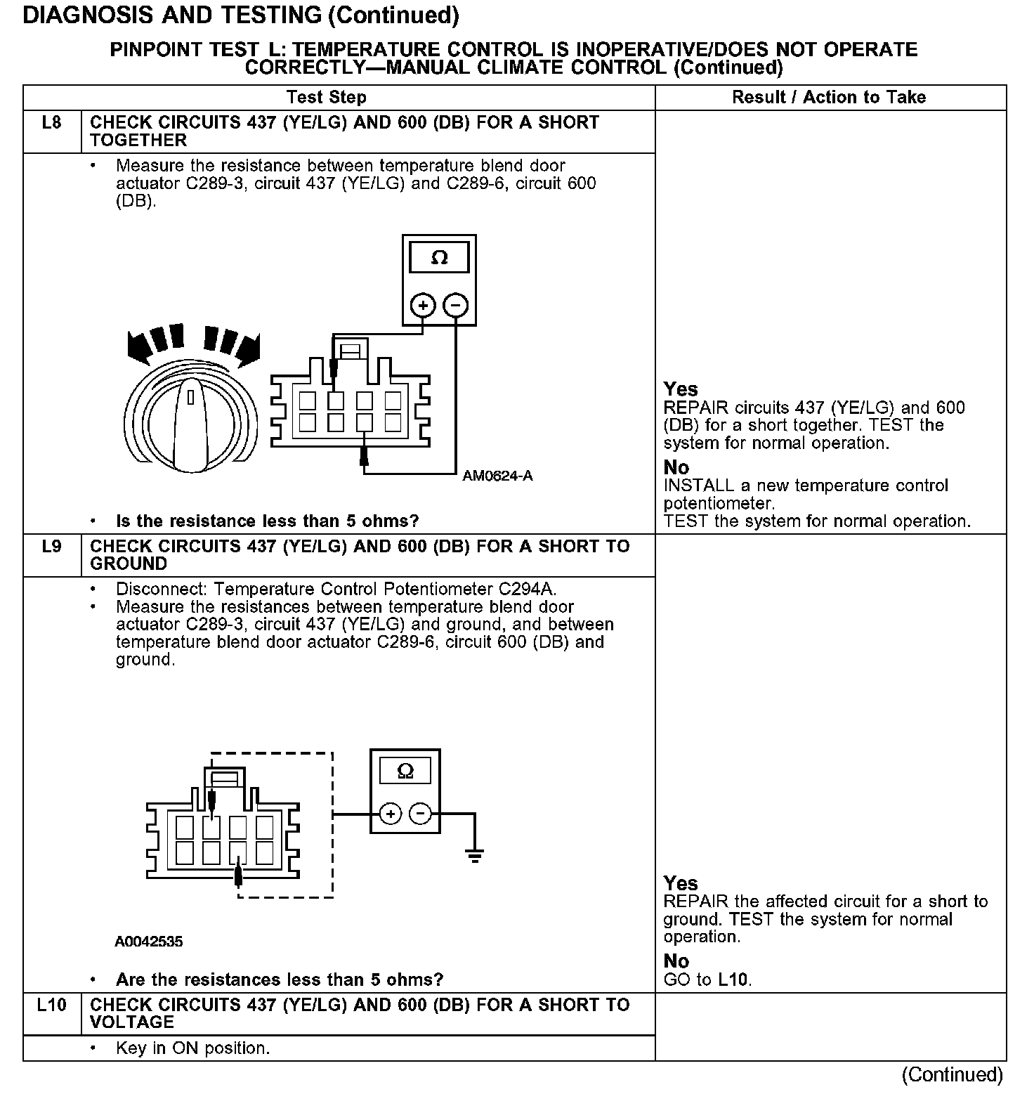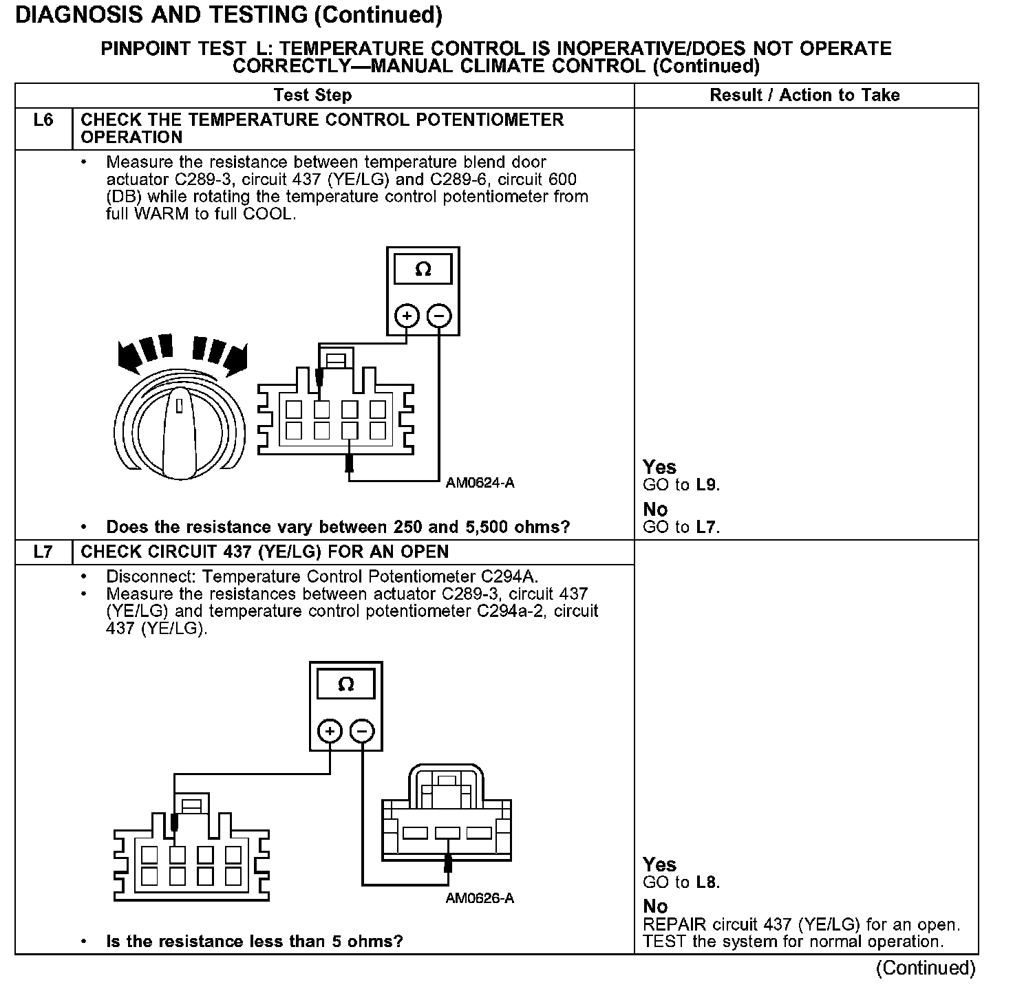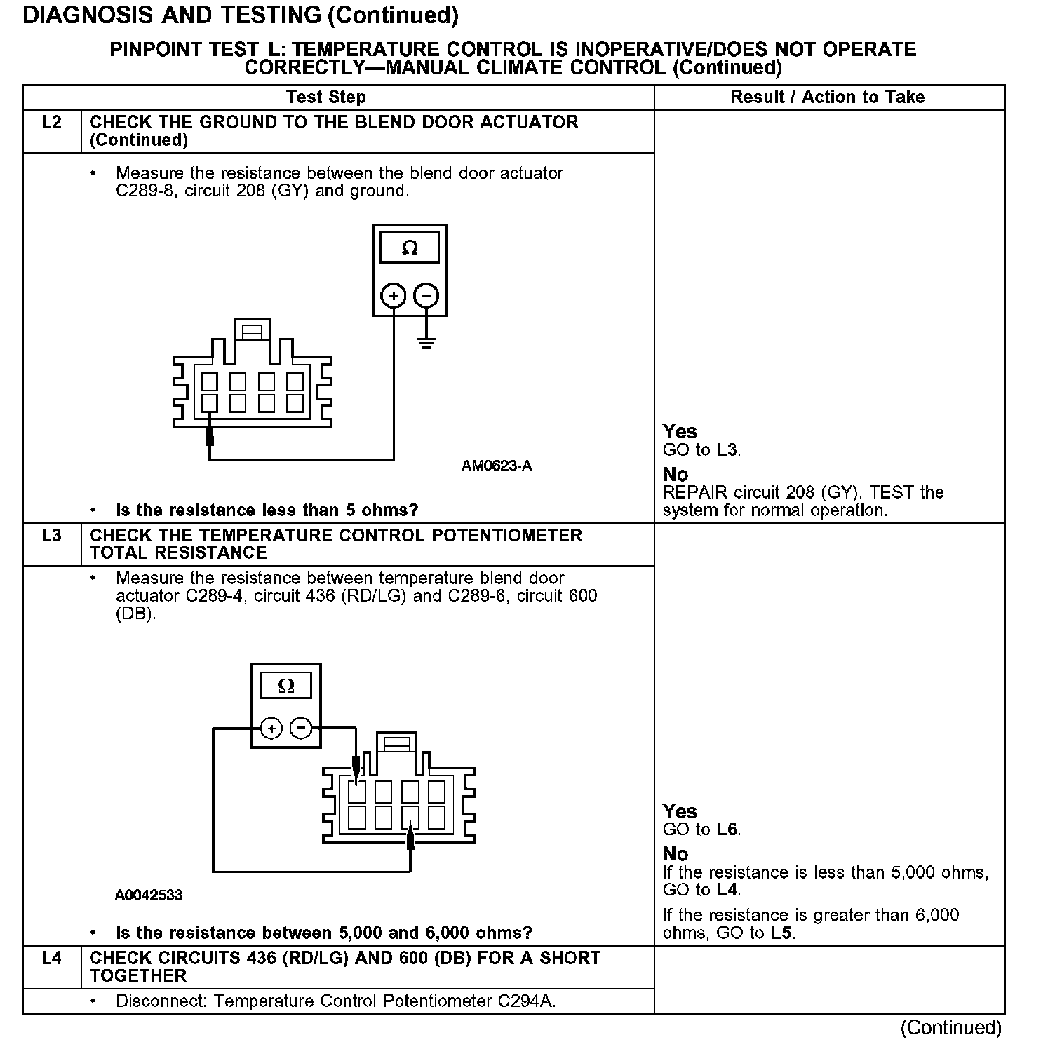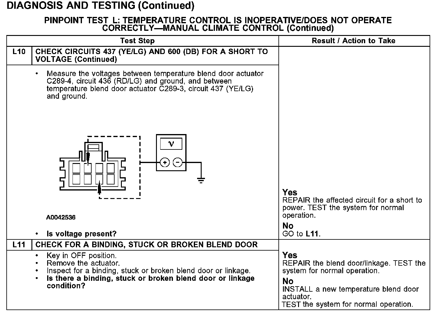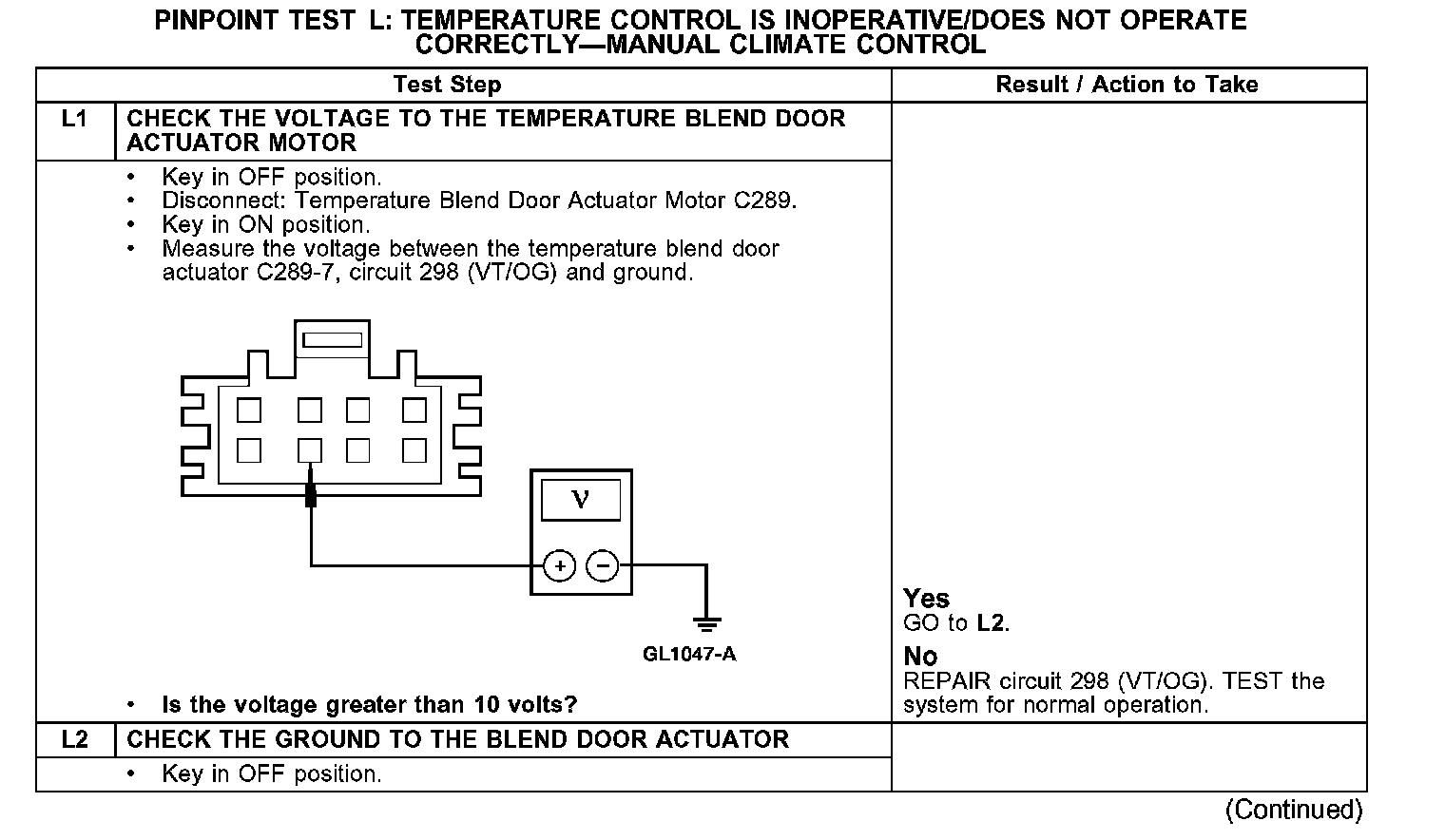 PINPOINT TEST L: TEMPERATURE CONTROL IS INOPERATIVE/DOES NOT OPERATE CORRECTLY - MANUAL CLIMATE CONTROL