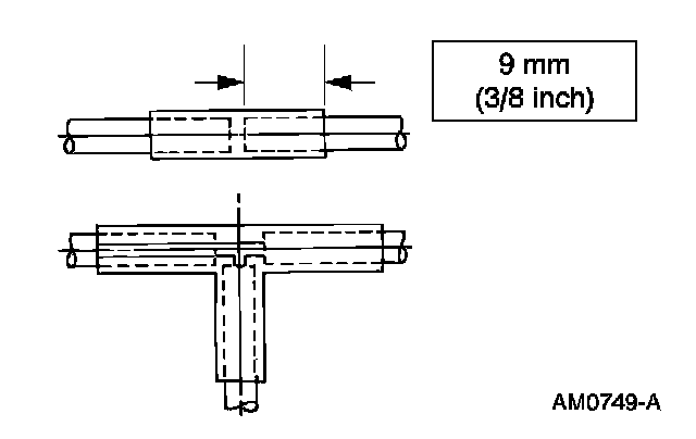 5. Insert the ends of the mini-tube vacuum hose approximately 9 mm (3/8 inch) into the ends of the standard 1/8 inch repair vacuum hose.