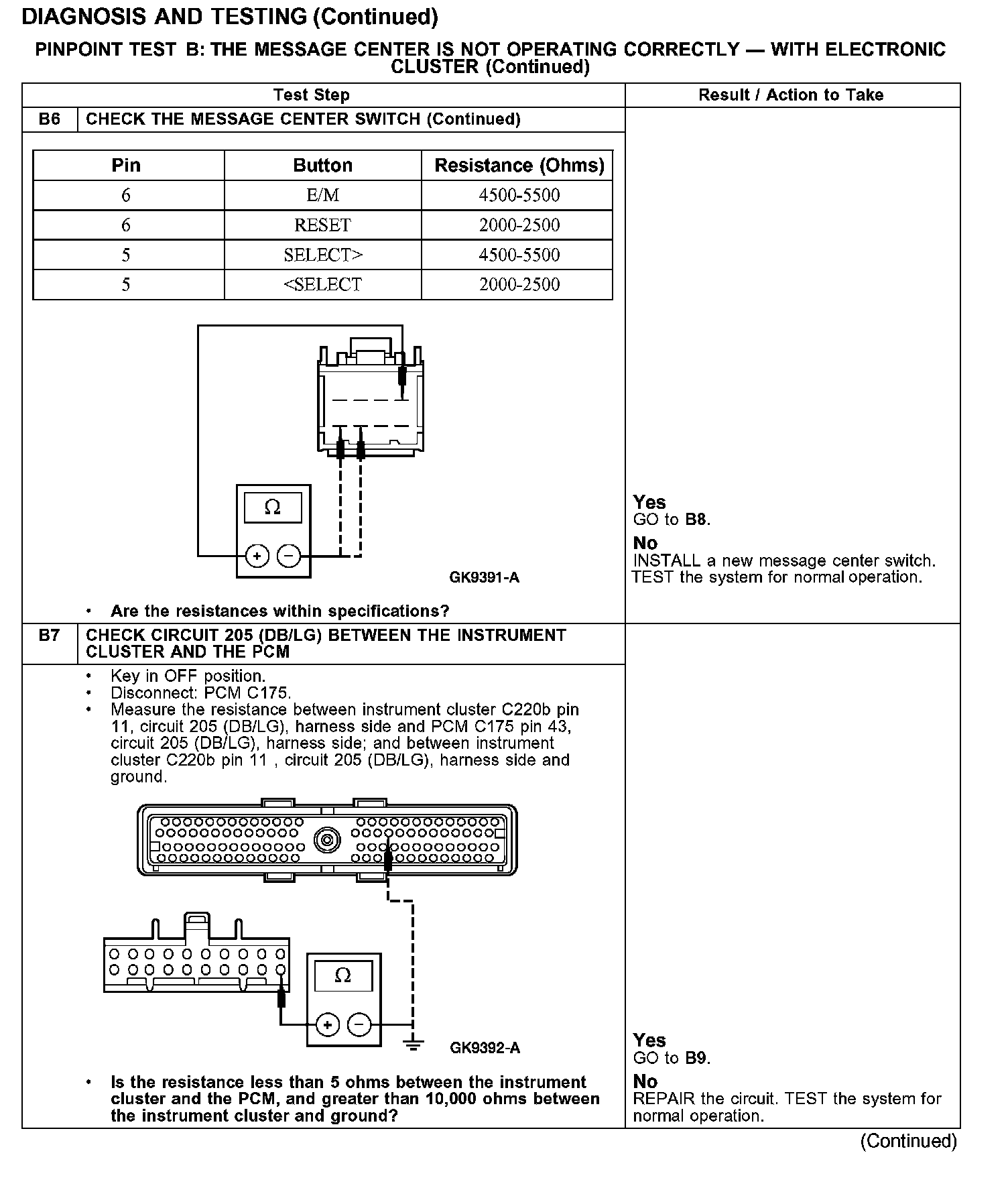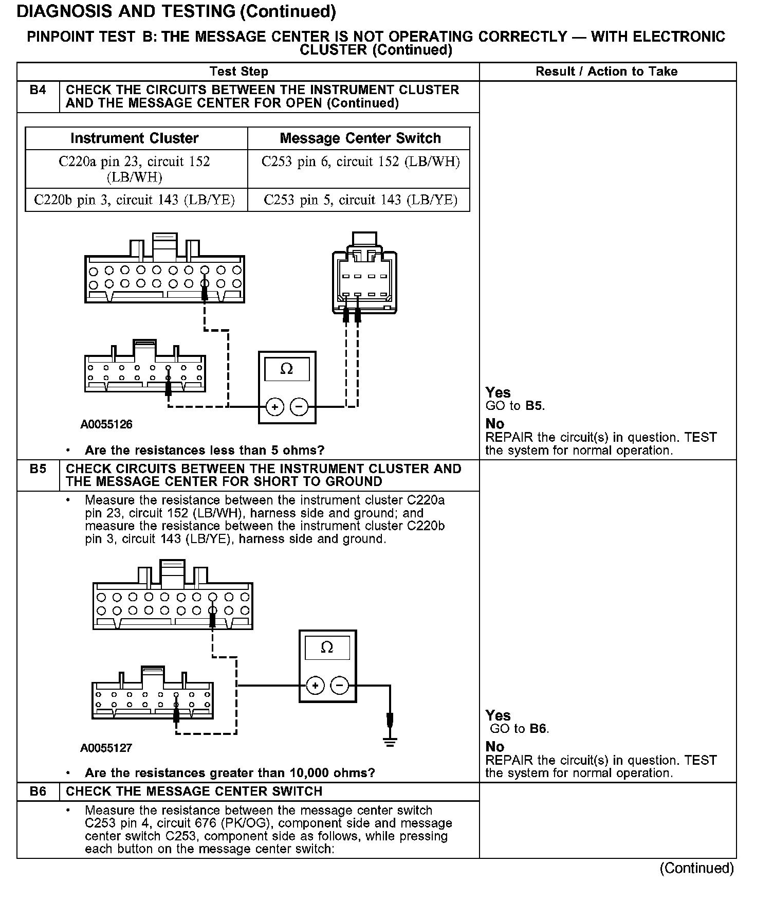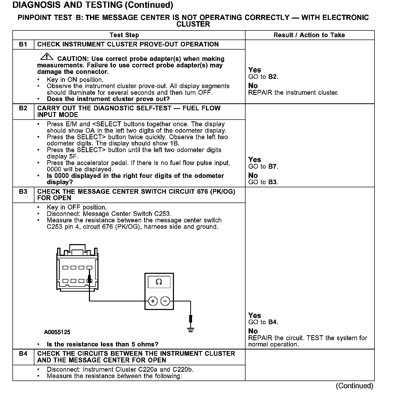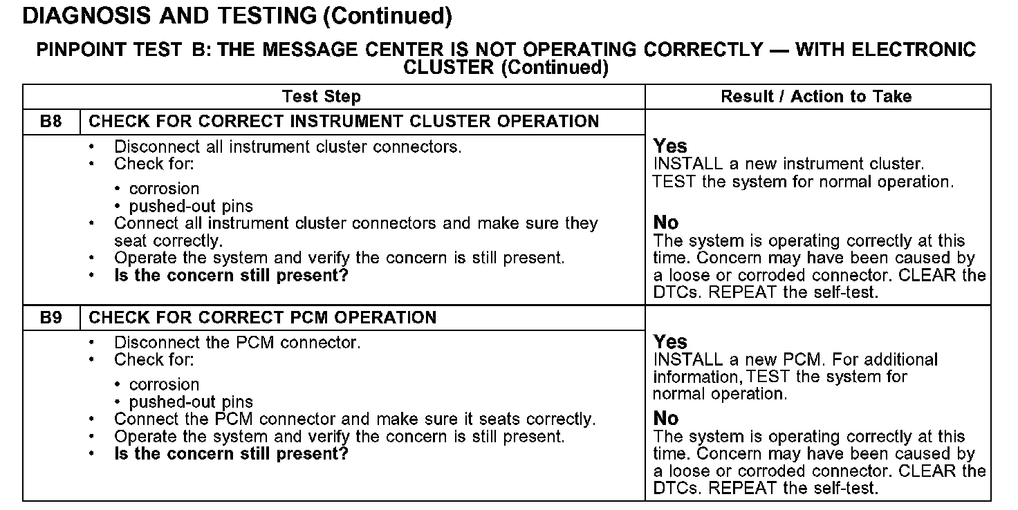 PINPOINT TEST B: THE MESSAGE CENTER IS NOT OPERATING CORRECTLY - WITH ELECTRONIC CLUSTER