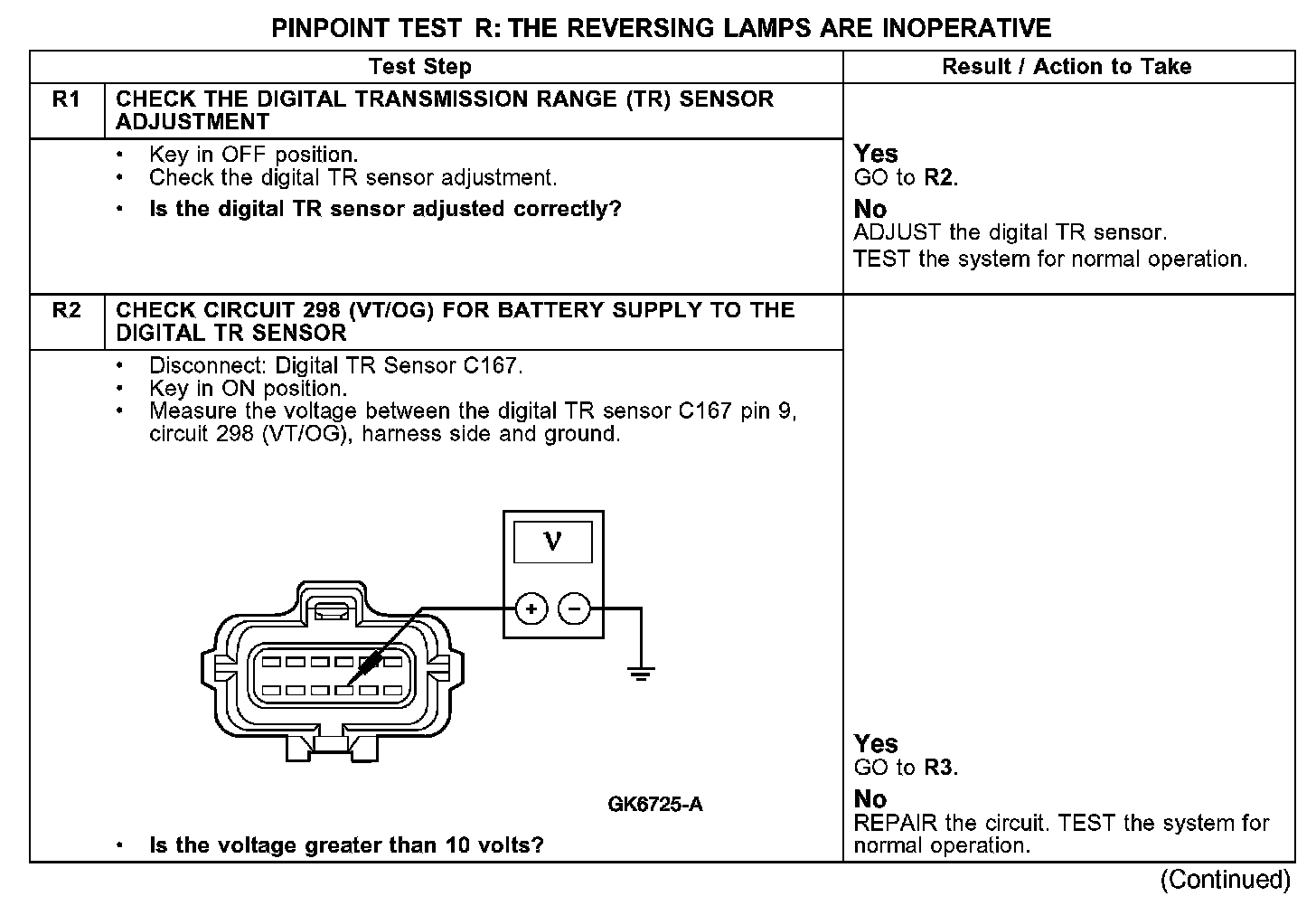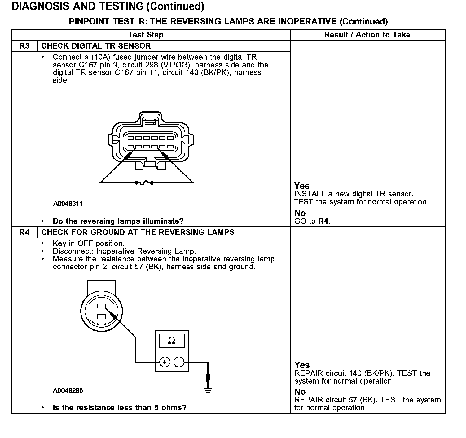 PINPOINT TEST R: THE REVERSING LAMPS ARE INOPERATIVE