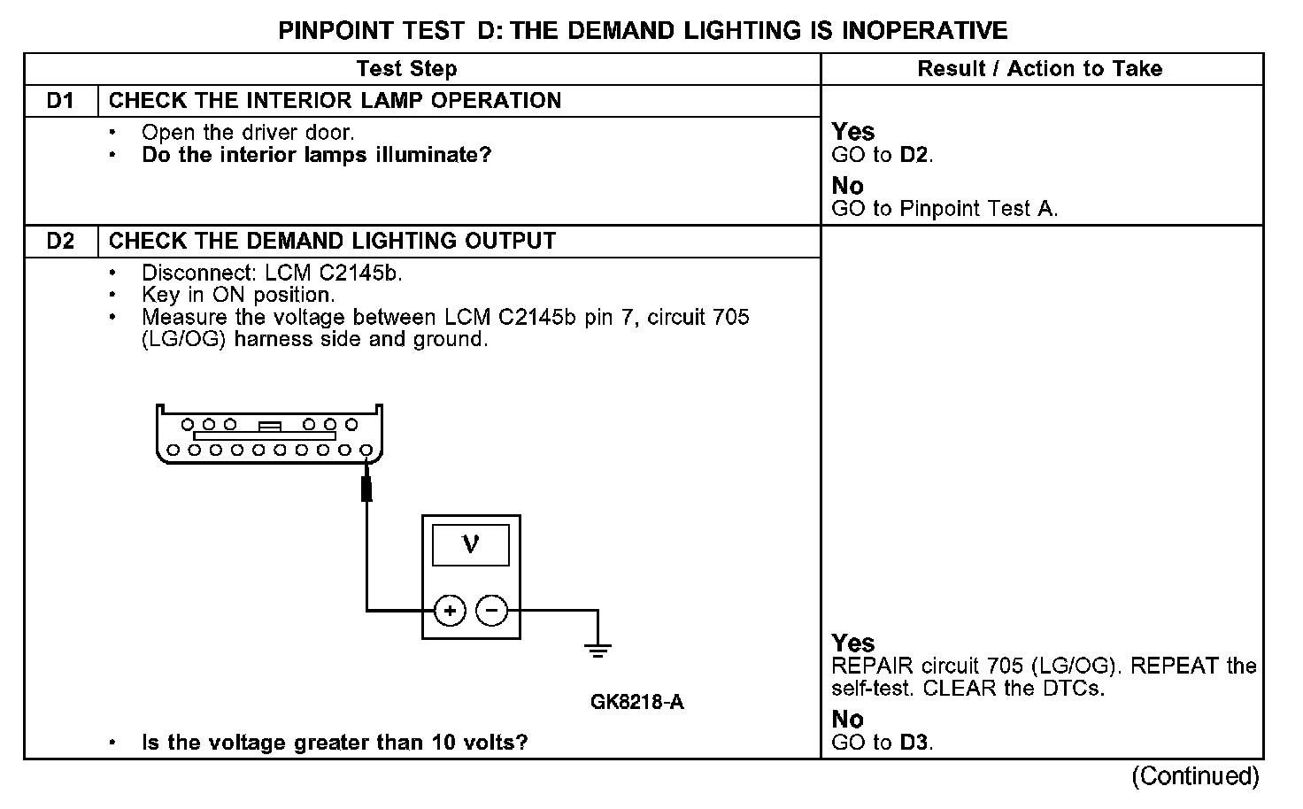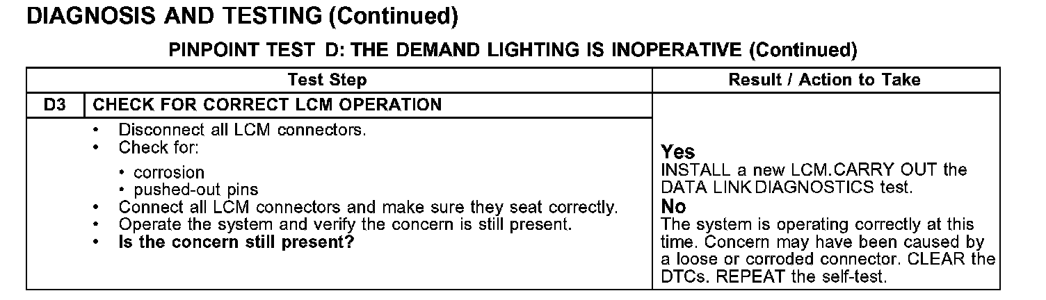 PINPOINT TEST D: THE DEMAND LIGHTING IS INOPERATIVE