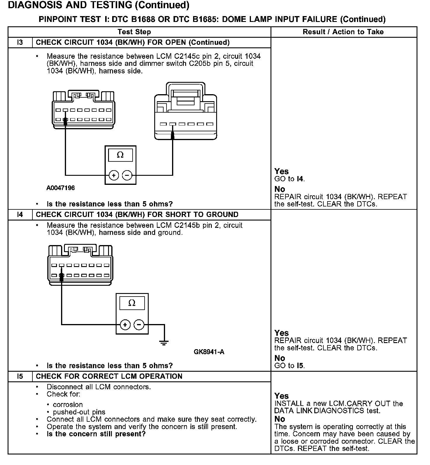 PINPOINT TEST I: DTC B1688 OR DTC B1685: