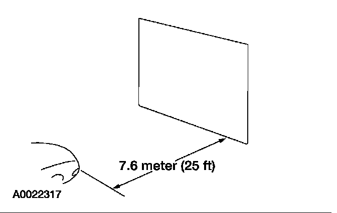 Park the vehicle on a level surface approximately 7.6 meters (25 ft) from the vertical wall or screen directly in front of it.