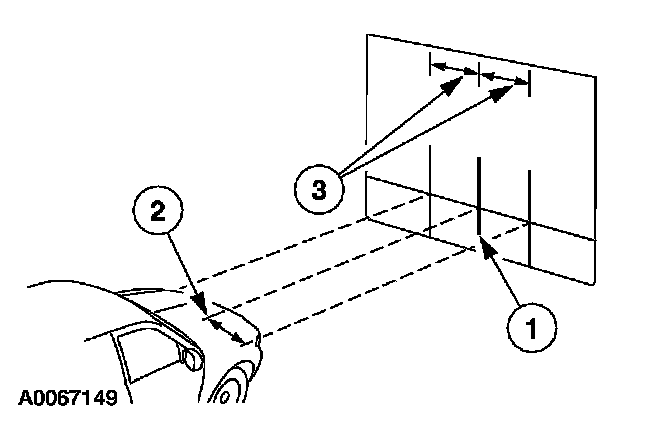 3 Make two 1.5 meter (5 foot) vertical marks (masking tape) on the wall or screen at the same distance from the vehicle centerline as previously recorded.