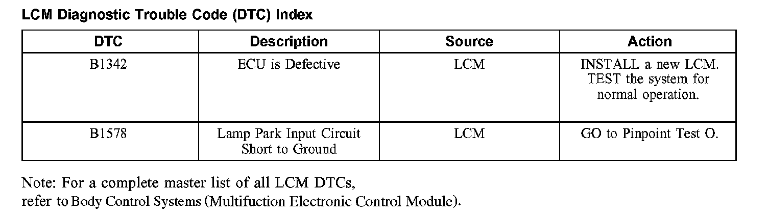 DTC Index B1342 - B1578: