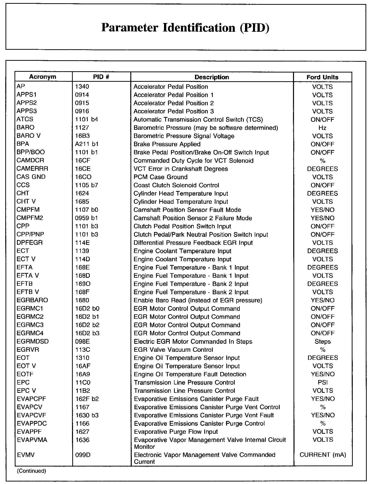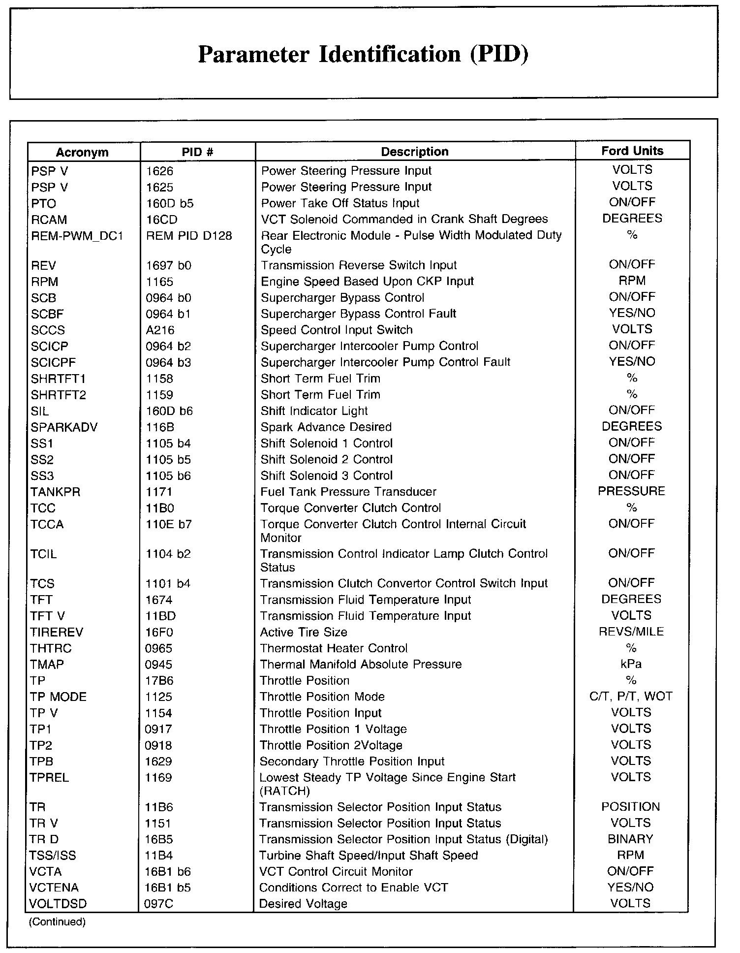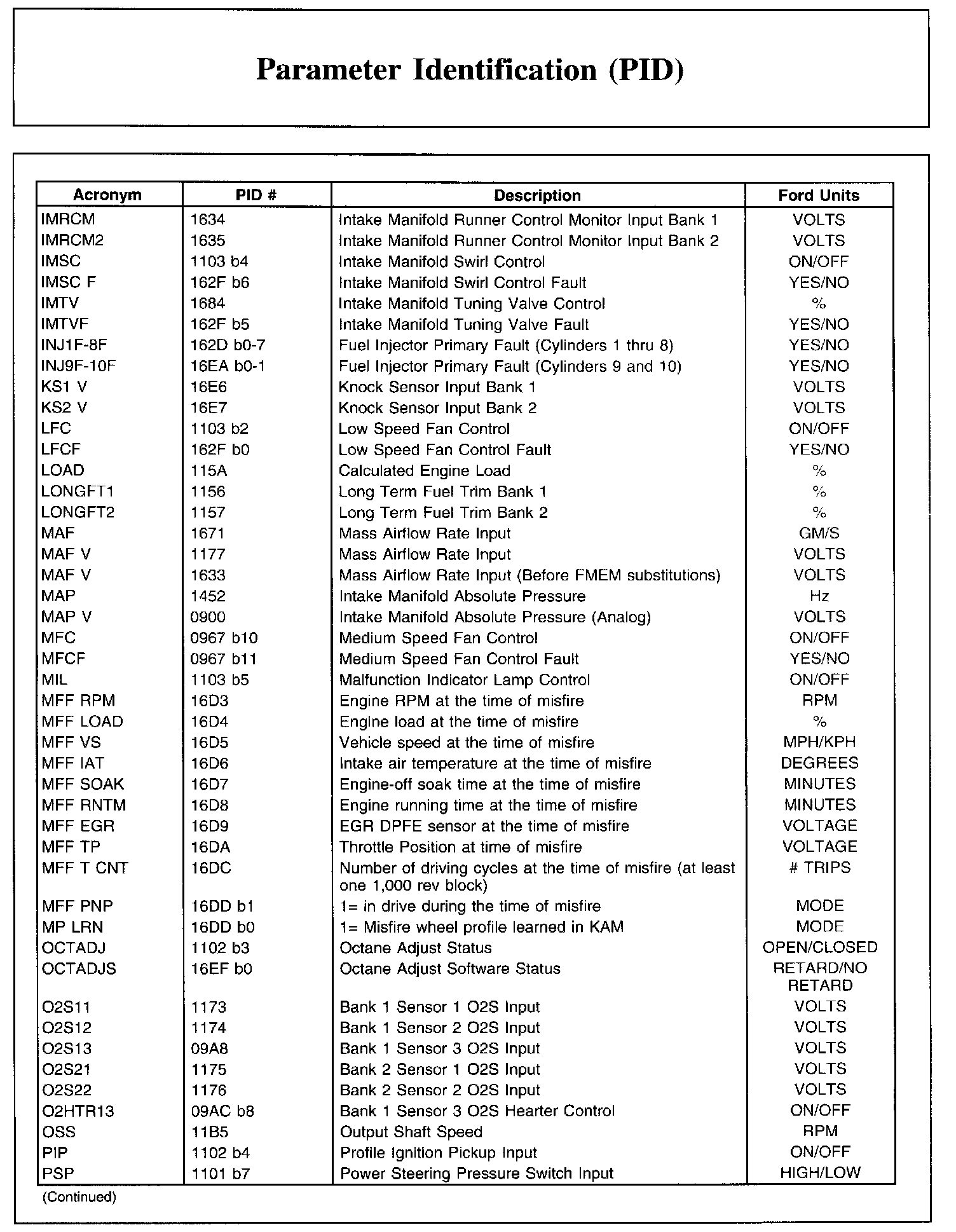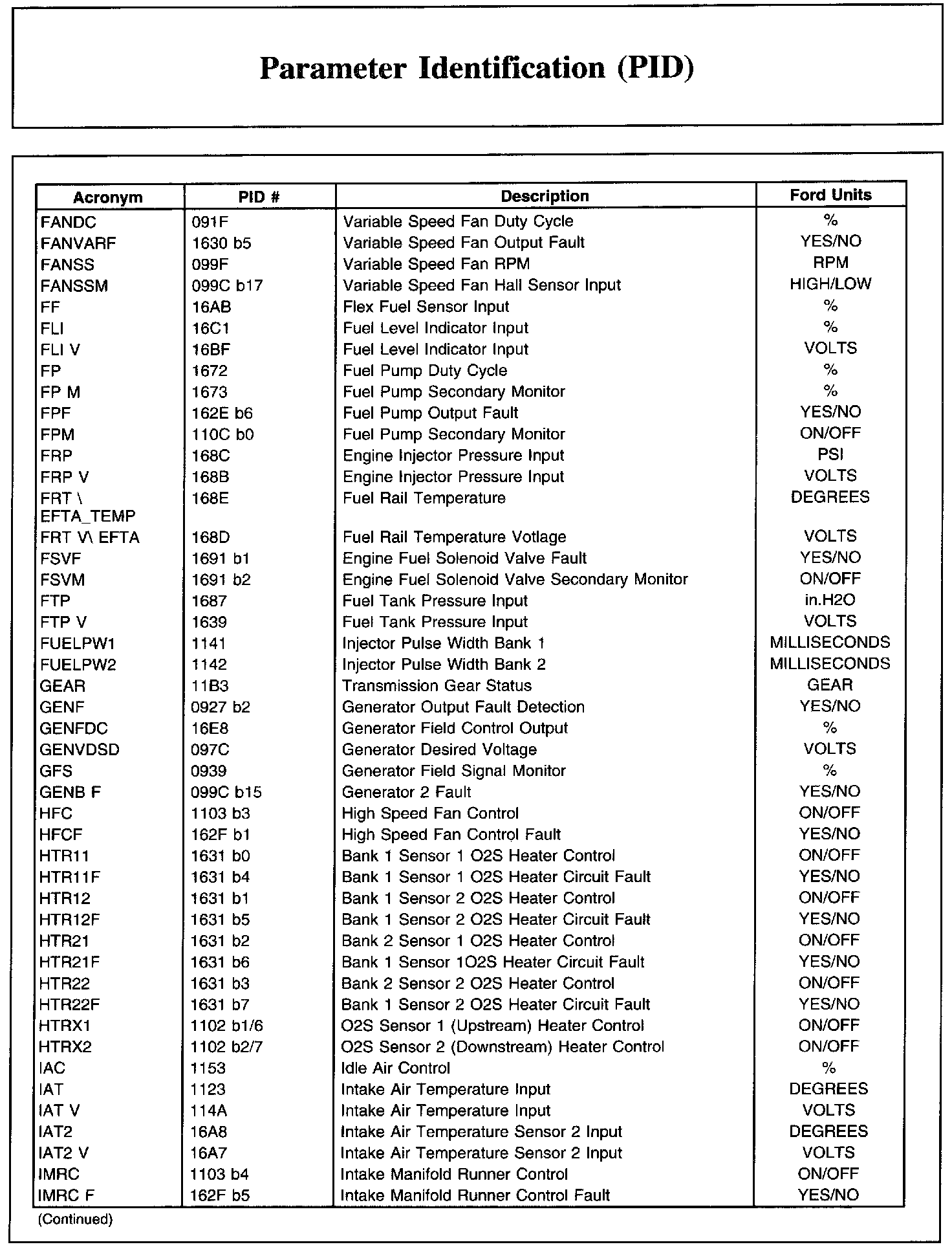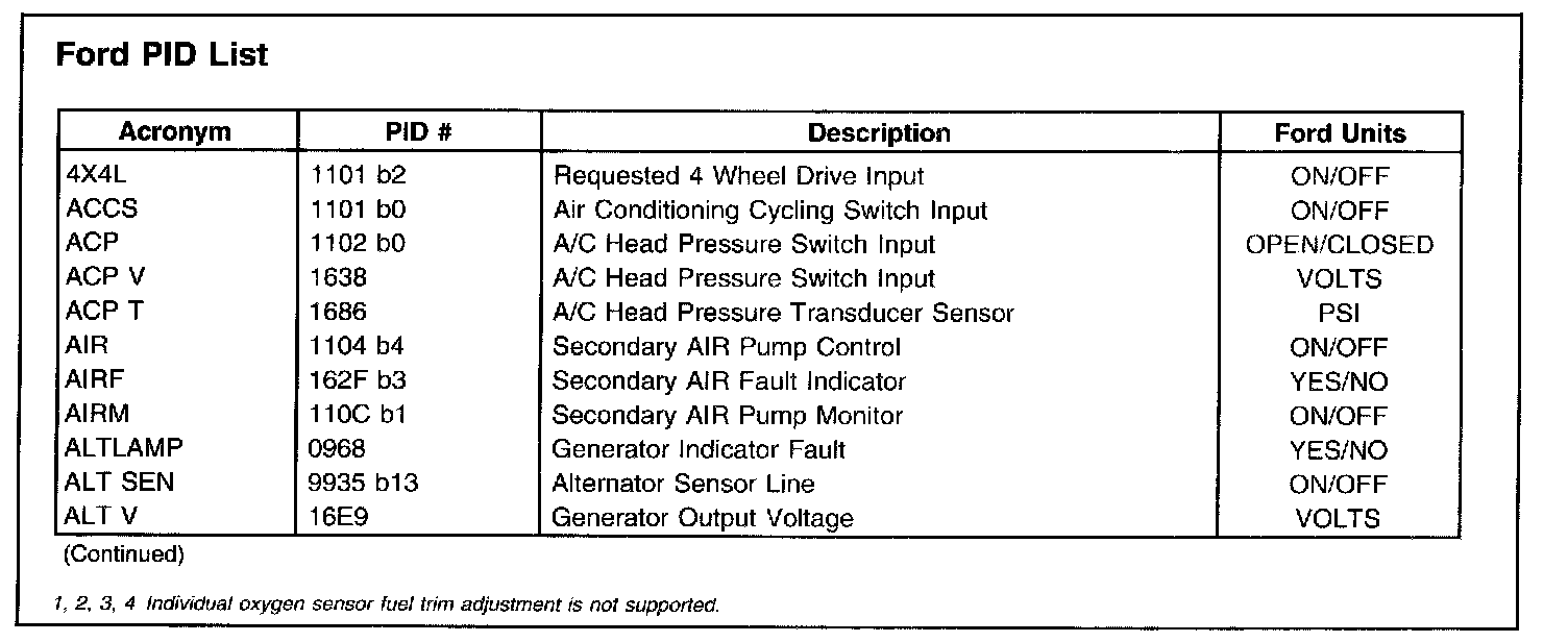 Ford PID List, Part 2: