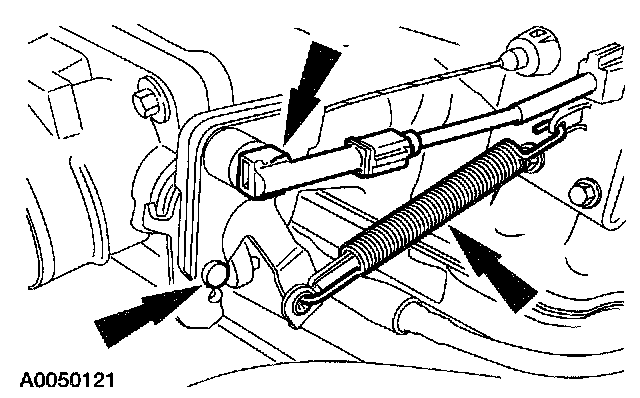 2. Remove the spring and disconnect the accelerator and speed control cables.