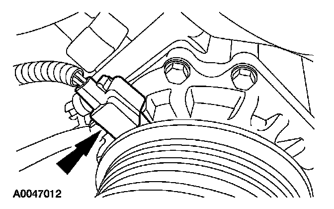 Loosen the bolts enough to slide the compressor down one inch, allowing access for CKP sensor removal.