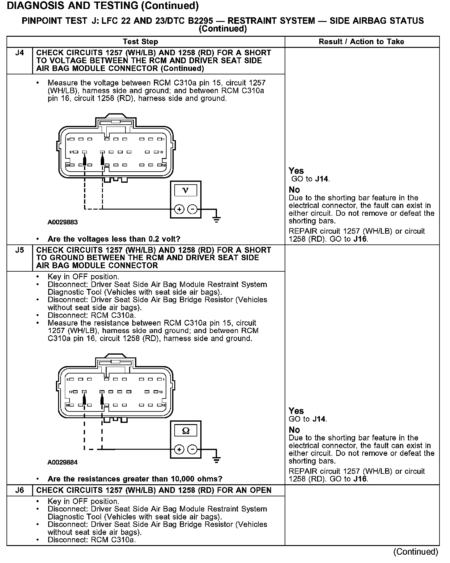 PINPOINT TEST J: LFC 22 AND 23/DTC B2295 - RESTRAINT SYSTEM - SIDE AIRBAG STATUSTest J1-J2: