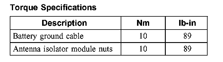 Torque Specifications: