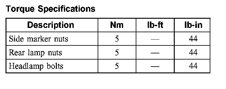 Torque Specifications: