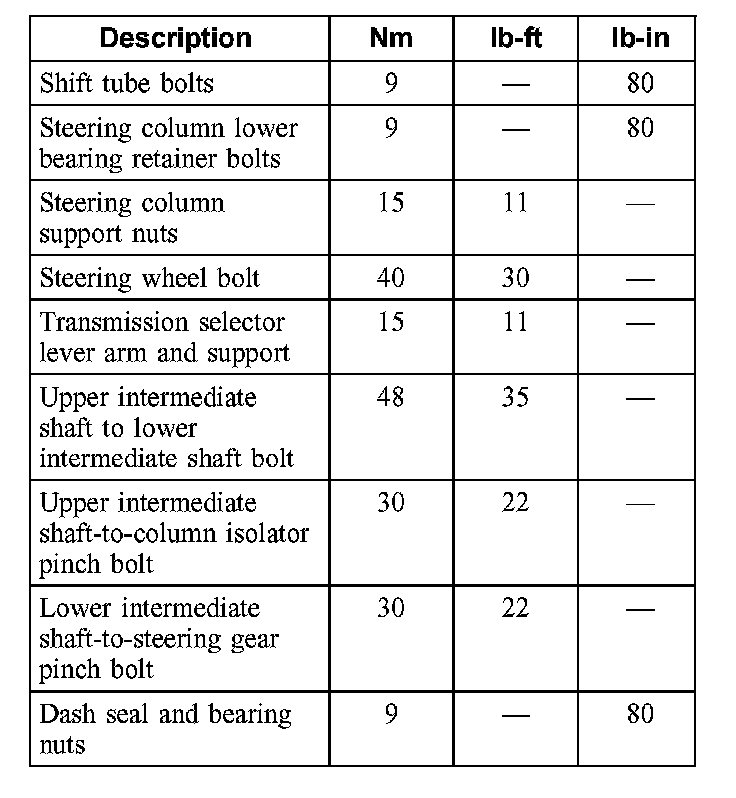 Steering Column Specifications