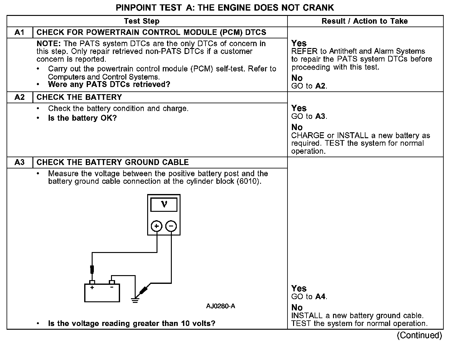 PINPOINT TEST A: THE ENGINE DOES NOT CRANK
