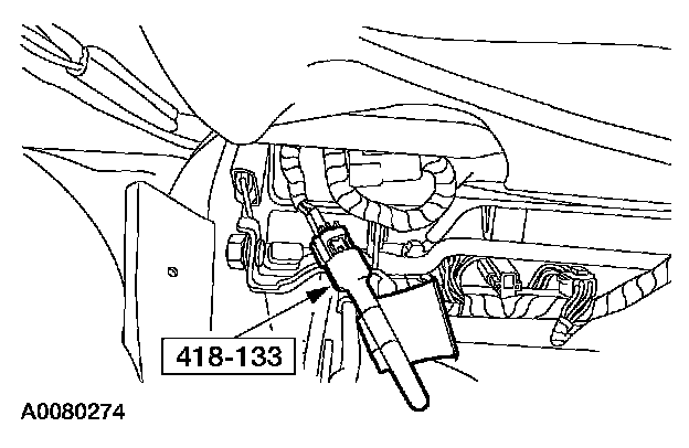 9. Remove the restraint system diagnostic tool from the passenger safety belt retractor pretensioner electrical connector.