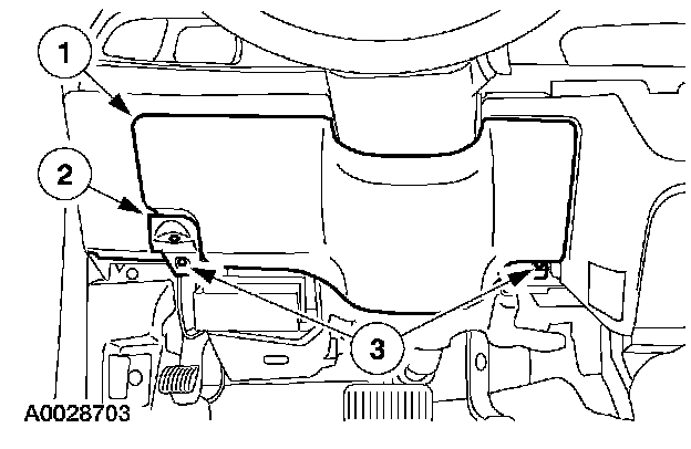 23. Through the glove compartment opening, install the passenger air bag module bolts.