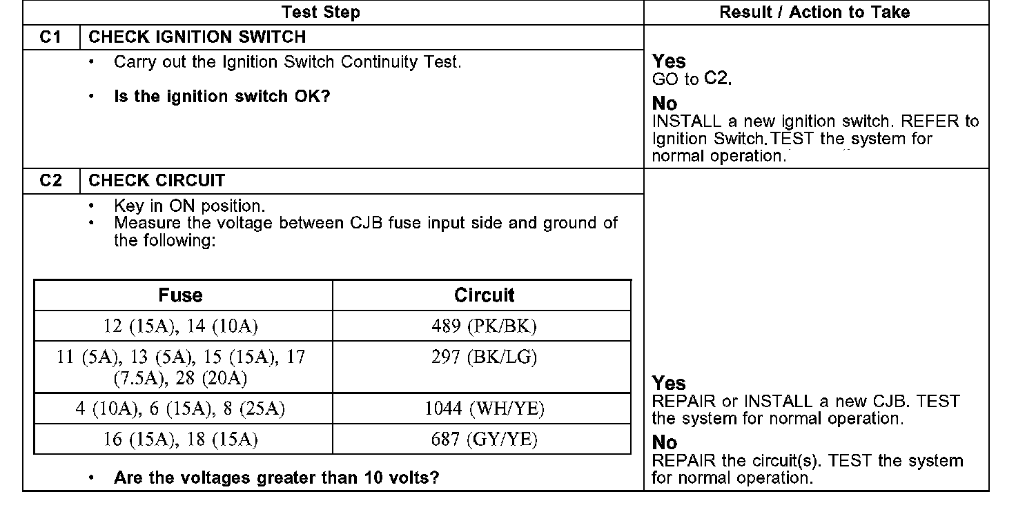 PINPOINT TEST C: NO POWER IN RUN POSITION