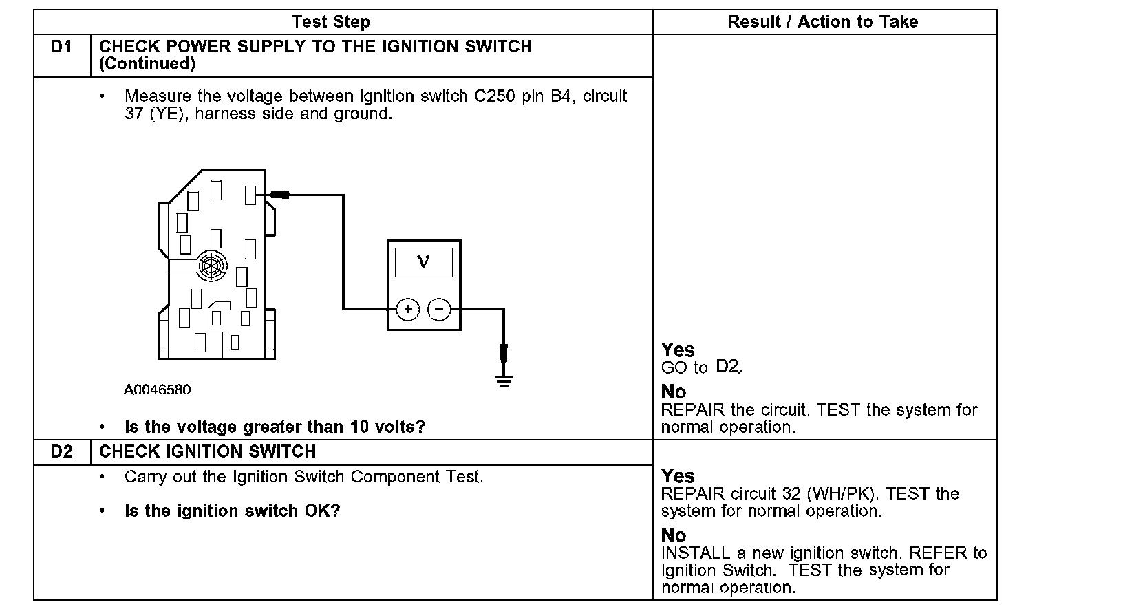 PINPOINT TEST D: NO POWER IN START POSITION