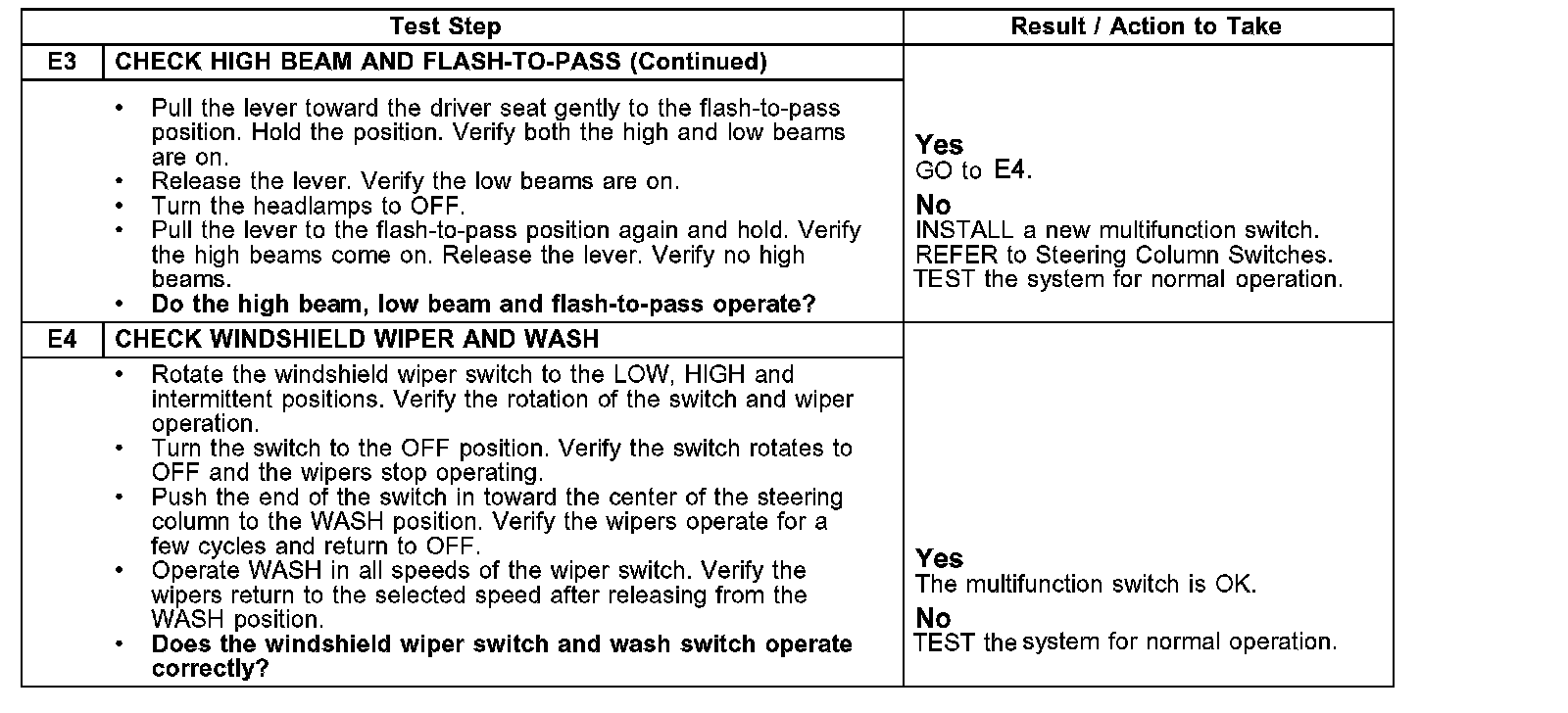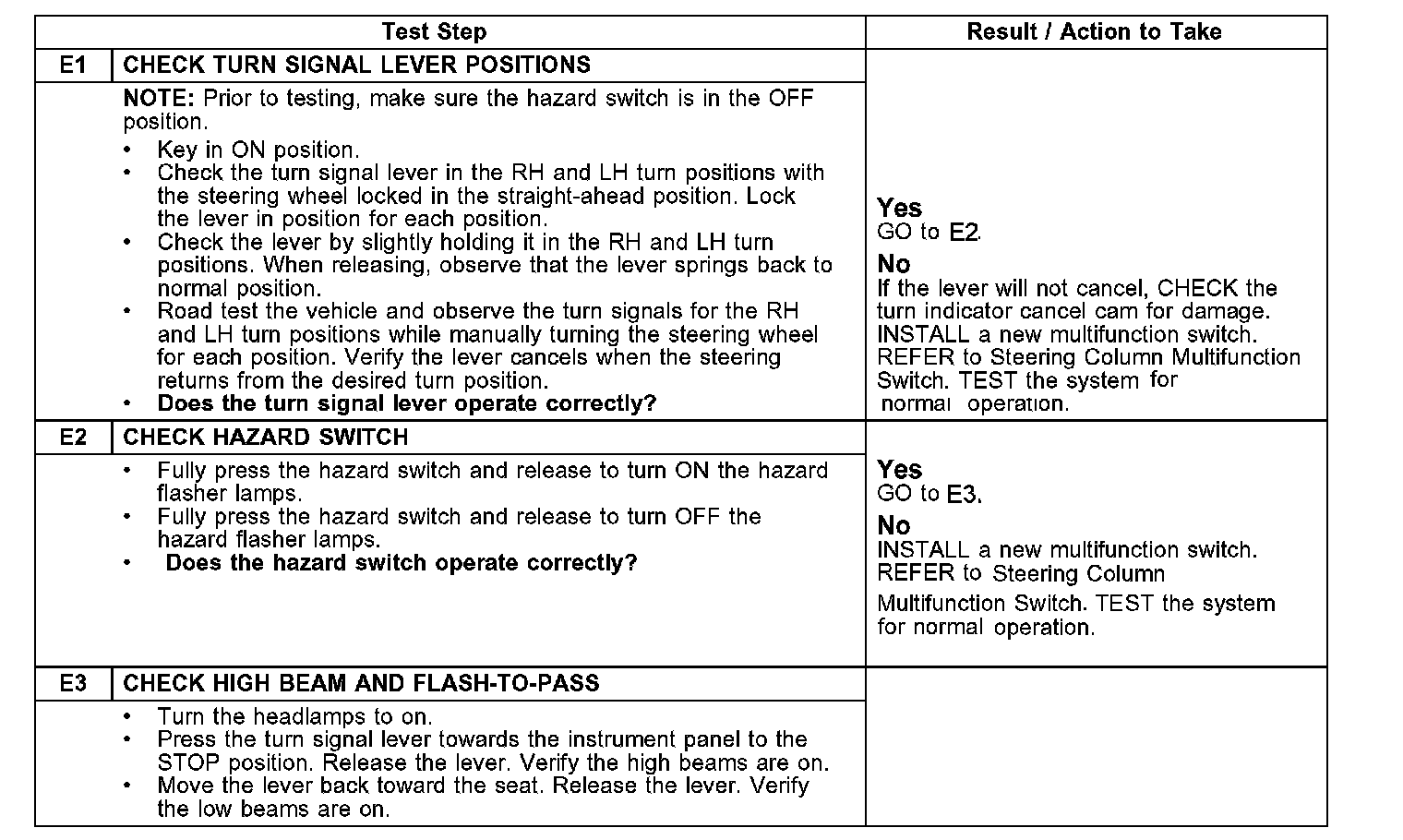 PINPOINT TEST E: MULTIFUNCTION SWITCH DOES NOT OPERATE CORRECTLY