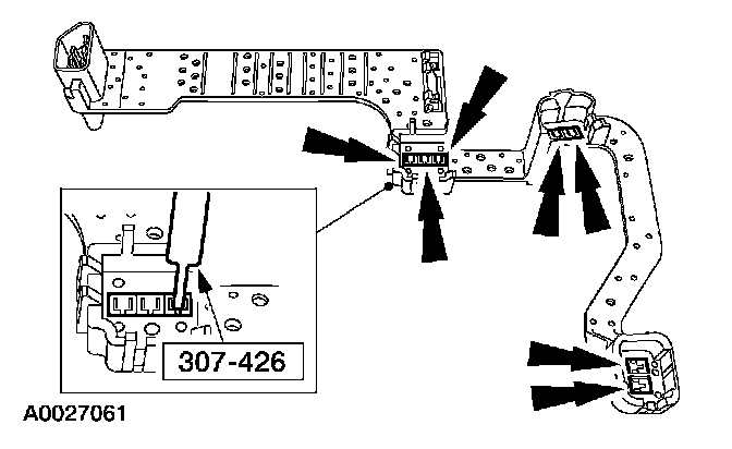 ^ Using the special tool, check all lead frame solenoid connections. The gauge should fit tightly and not fall out after being inserted.