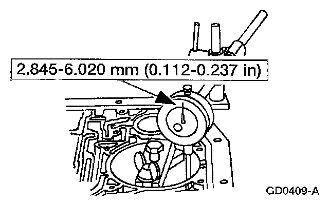 47. Verify that the amount of piston travel on the dial indicator is within specification.