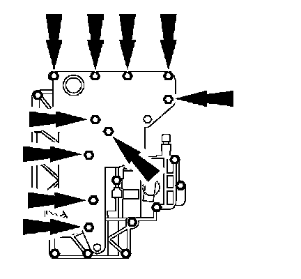 Loosely install the 10 long main control valve body bolts.