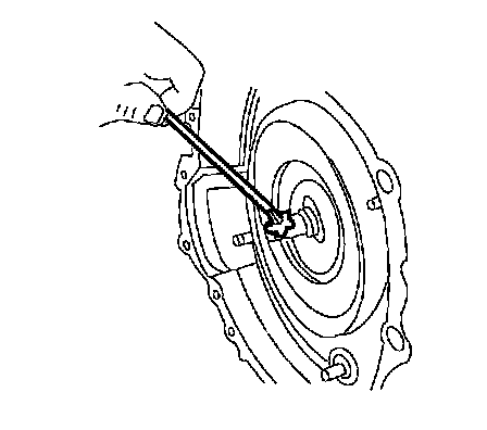 CAUTION: If the torque converter slides out, the hub seal may be damaged.