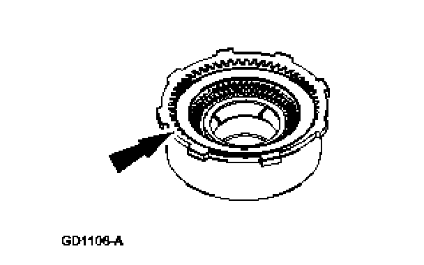 6.Check the clutch hub thrust surfaces for scores and clutch hub splines for wear.