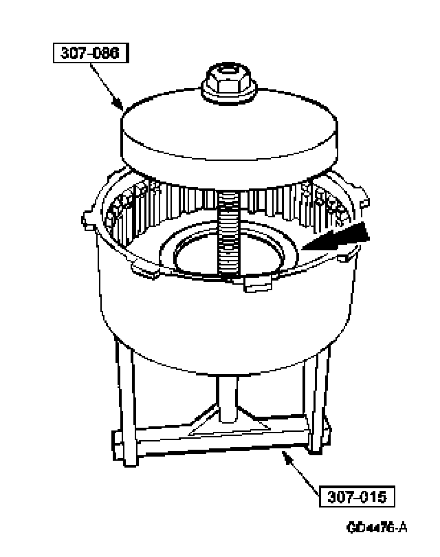 10.Using the special tools compress the reverse clutch piston spring.