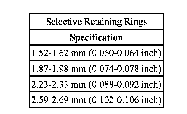 - If clearance is not within specifications install the correct size retaining ring.