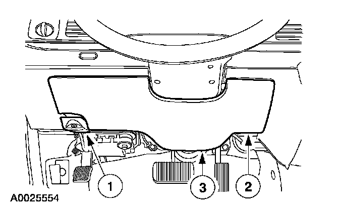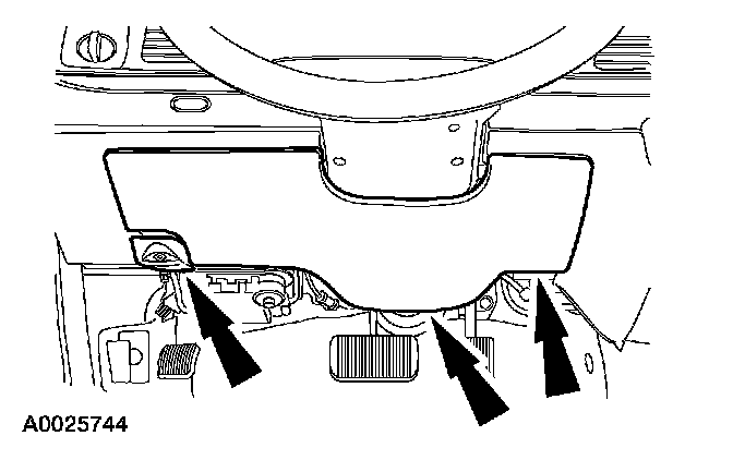 3 Pull outward to release the retaining clips and remove the lower steering column opening finish panel.