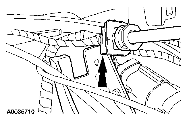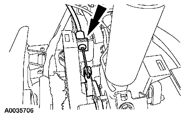 7. Release the interlock cable housing clip and disconnect the interlock cable.