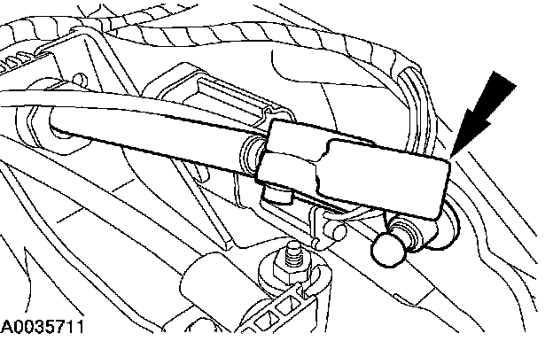 12. Disconnect the vacuum harness from the parking brake release mechanism.