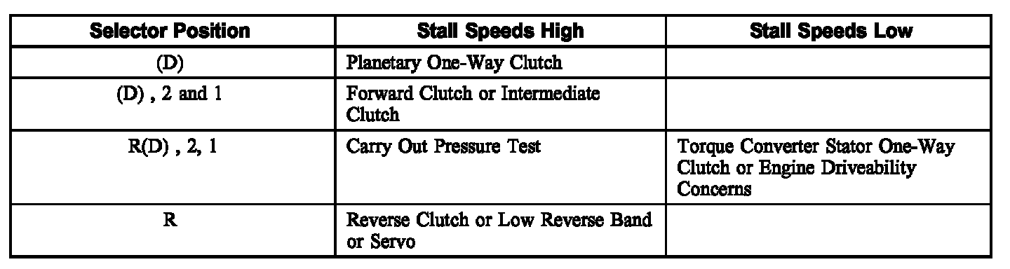 6. Refer to the Stall Speed Diagnosis Chart for corrective actions.