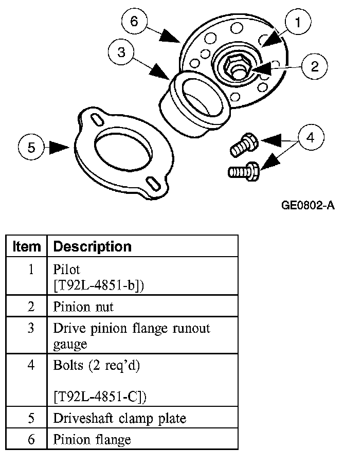 If the flange runout exceeds 0.25 mm (0.010 inch), remove the pinion flange, reindex the flange one-half turn on the pinion, and reinstall it.