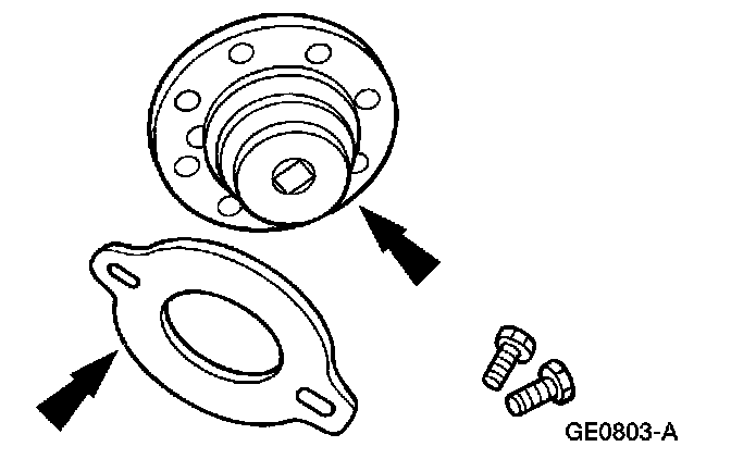 6. Align the holes on the Driveshaft Plate with the holes in the pinion flange and install the bolts. Snug the bolts evenly.
