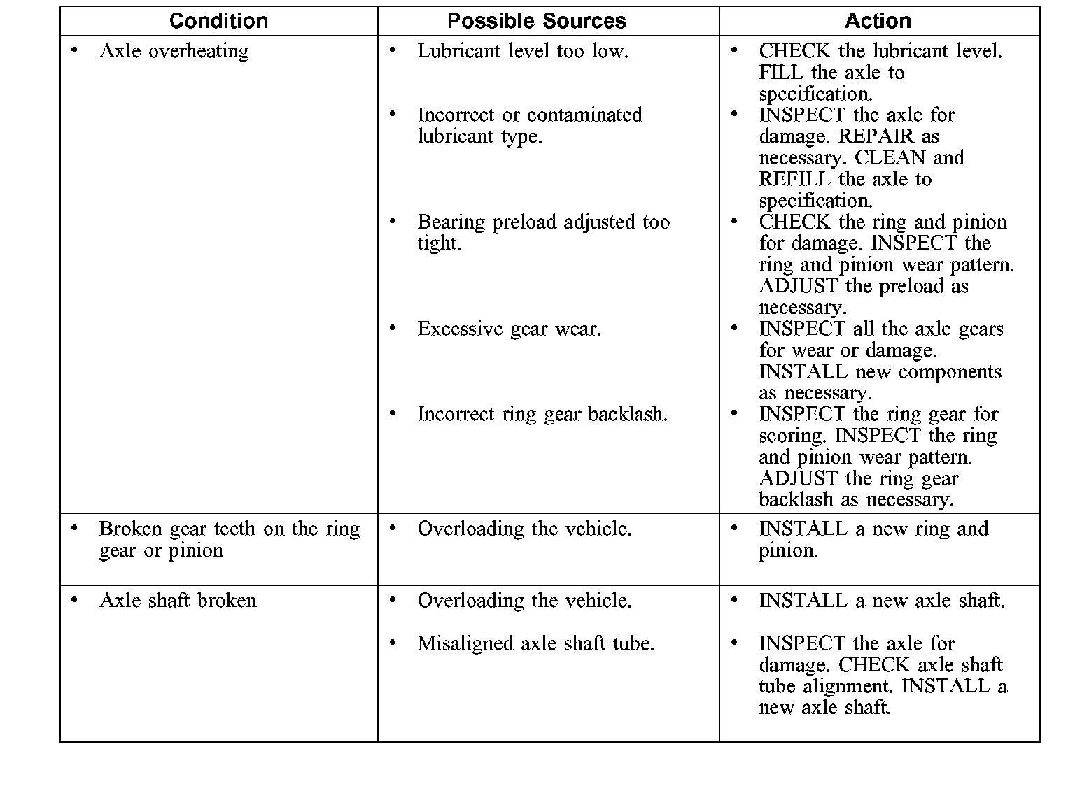 Symptom Chart-Driveline System