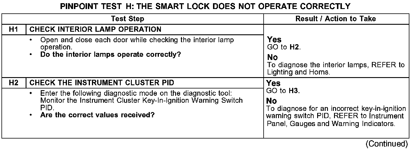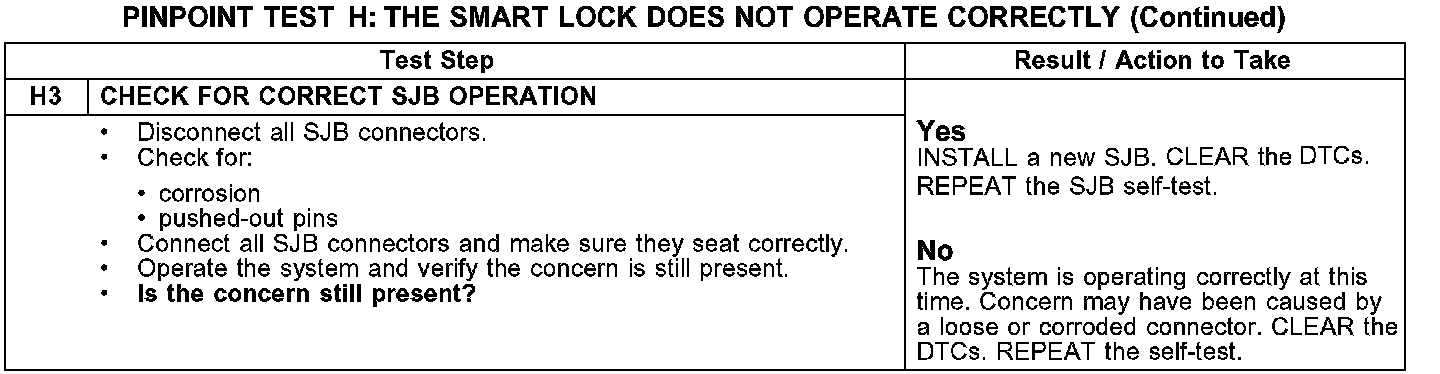 PINPOINT TEST H: THE SMART LOCK DOES NOT OPERATE CORRECTLY