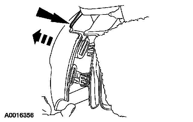 2 Carefully pull forward on the side shield releasing the hidden clip at the front of the seat cushion frame.