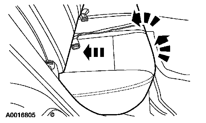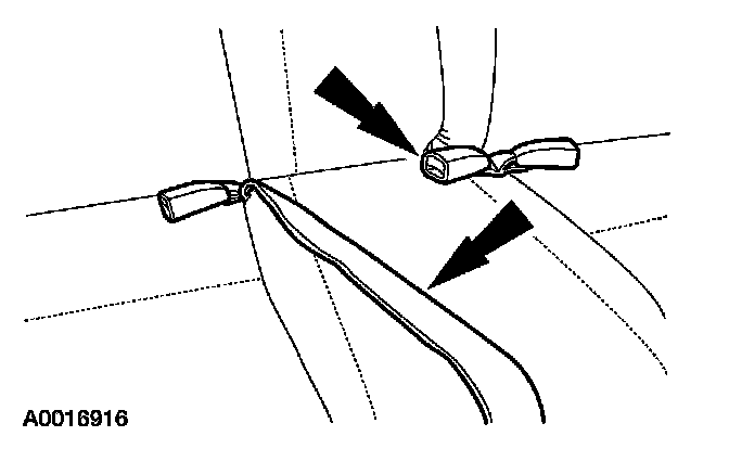 1. Apply pressure to the lower front portion of the rear seat cushion pad and frame. Push the rear seat cushion pad and frame rearward to disengage the rear seat cushion front retainers. Lift upward on the rear seat cushion and remove.