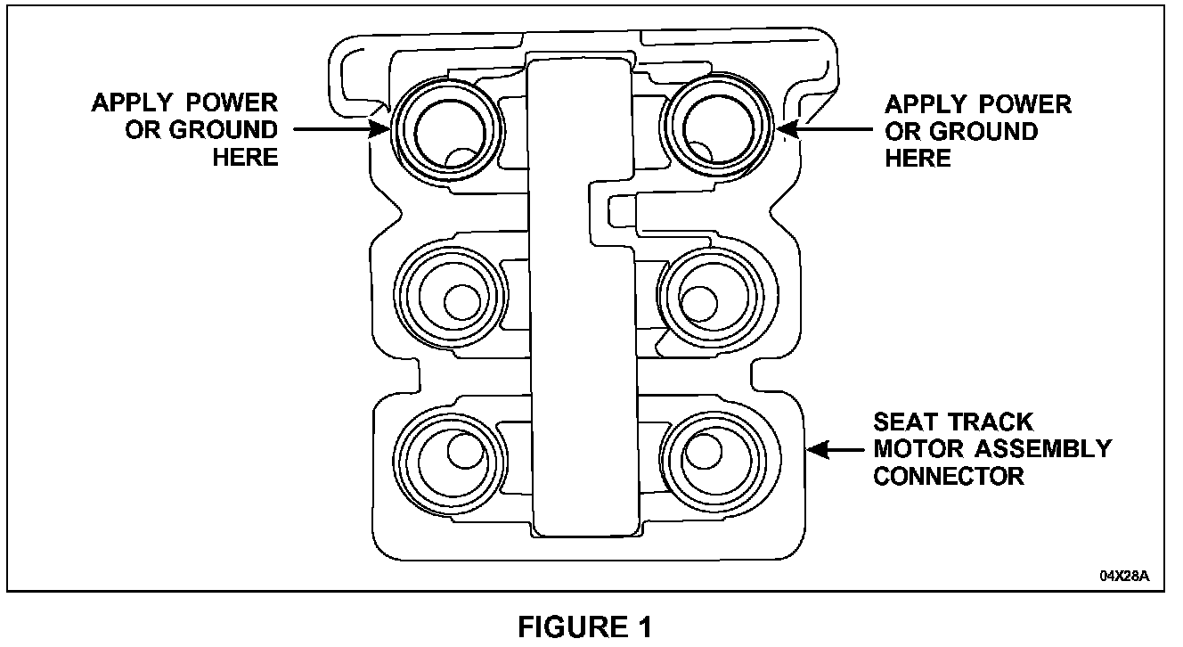 2. To change the seat track horizontal position, apply power and ground to the pins shown. See Figure 1.