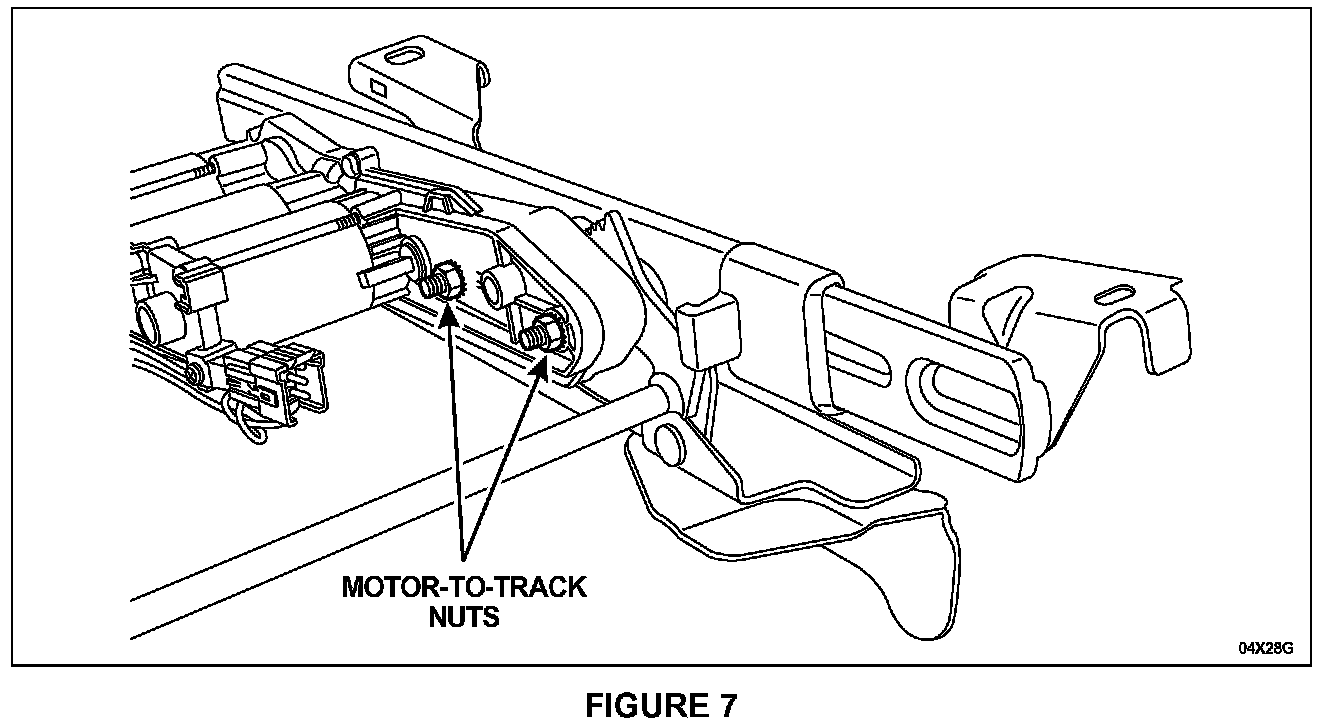 8. Remove the two (2) motor-to-track nuts (on Thunderbird, one nut was previously removed with the connector bracket). See Figure 7.