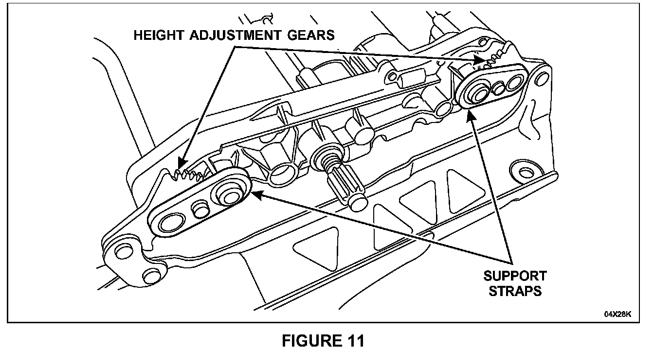 The support straps must fit flush against the front and rear height adjustment gears. Install the support straps. See Figure 11.