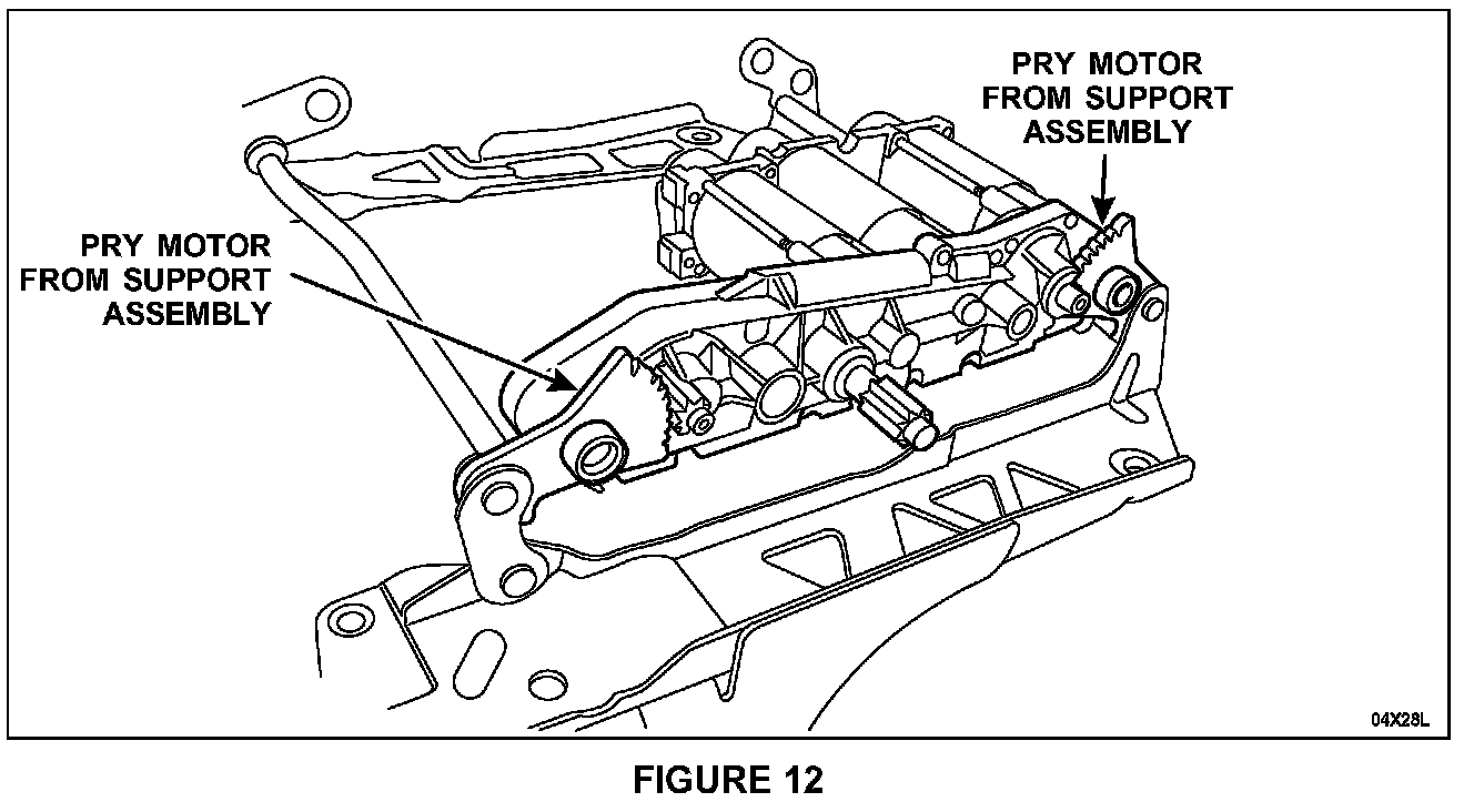 13. Pry and remove the seat track motor assembly from the upper support assembly. See Figure 12.