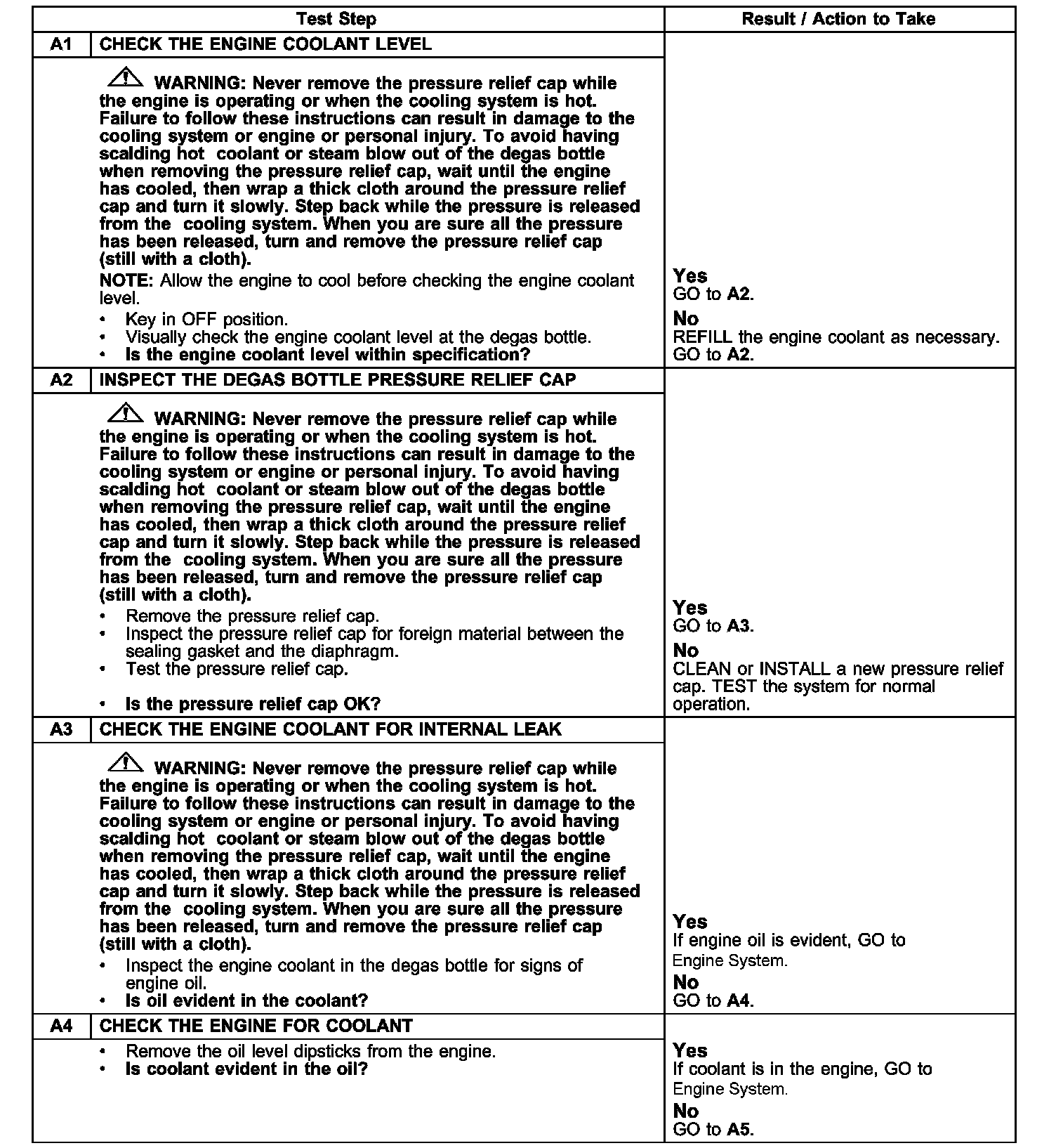 PINPOINT TEST A: LOSS OF ENGINE COOLANT